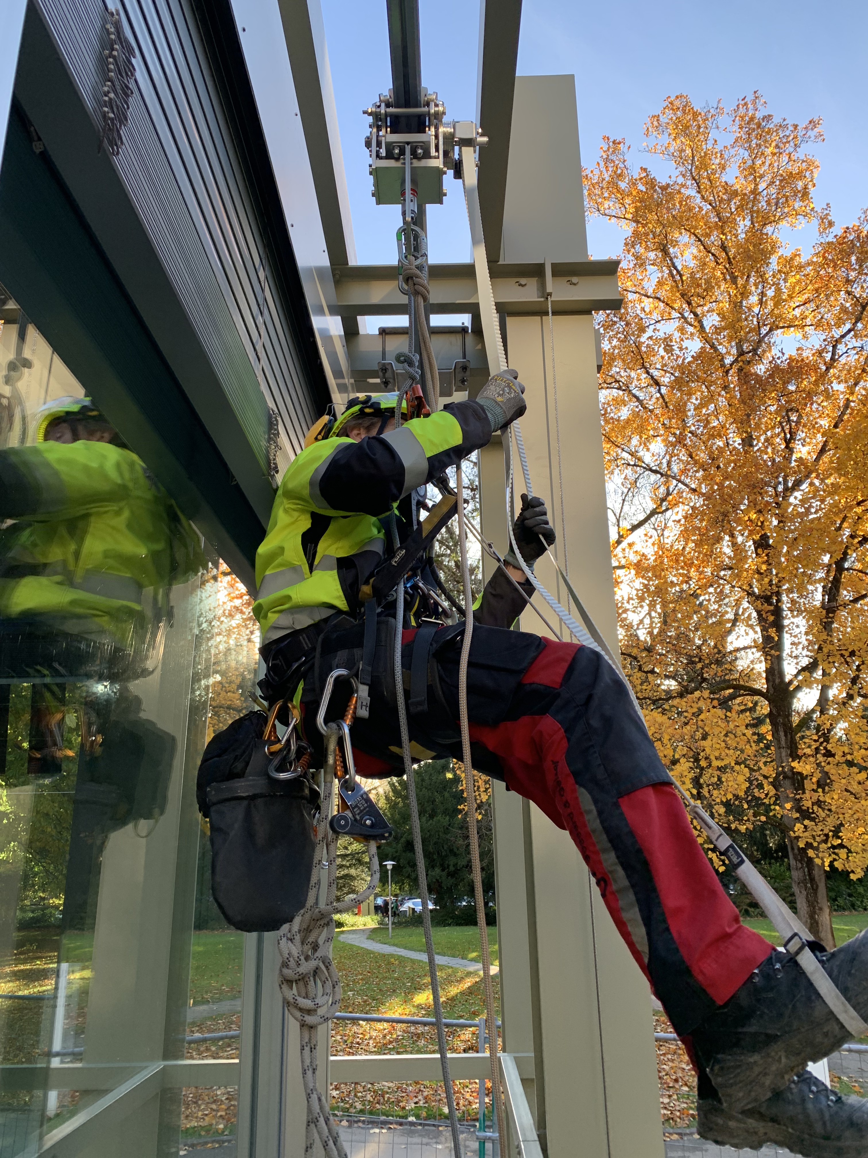 So lässt sich eine mögliche Lösung für die sichere Wartung der Fassade direkt vor Ort demonstrieren.
