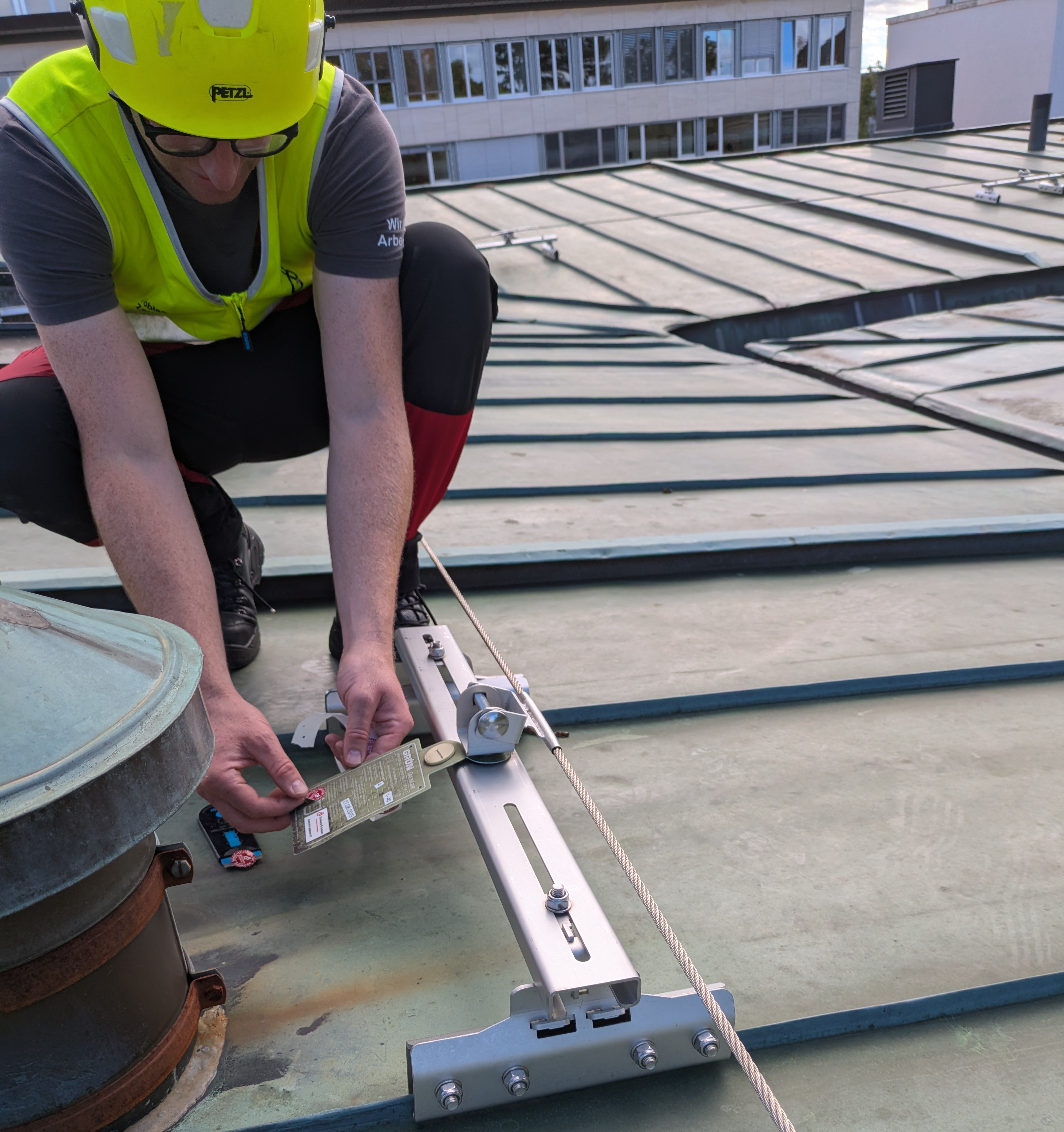 Viel Betrieb an der Universität in Basel: gleichzeitig zum Semesterbeginn haben wir die Absturzsicherungen auf dem Dach der Universität Basel geprüft.